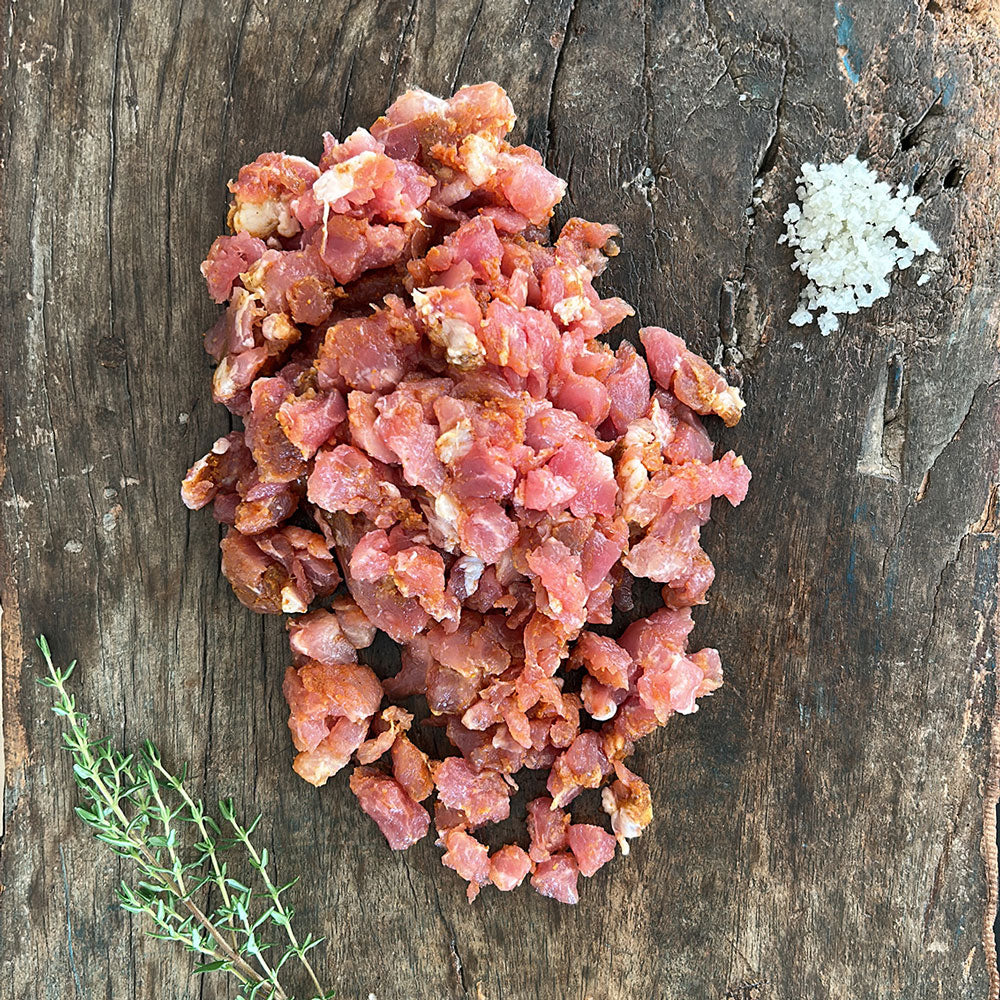 Fijn gesneden varkensvlees, gekruid met shoarmakruiden. Heerlijk in een pita of wrap. Snel klaar en vol smaak.